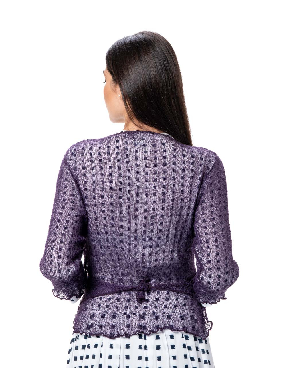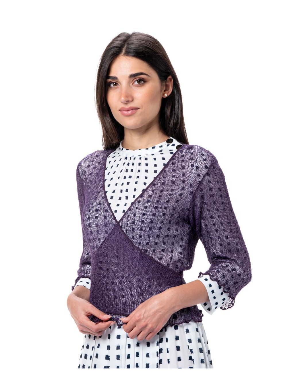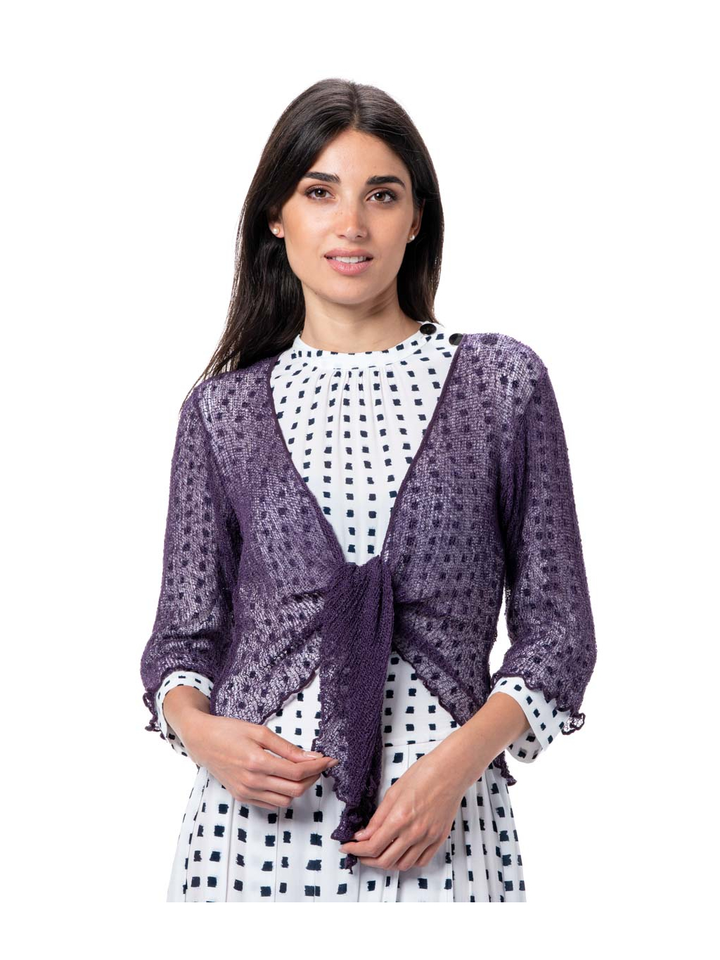 Krátký svetřík Galateia je velmi pohodlný a díky síťované struktuře je částečně elastický. Je krásně splývavý, velikost je univerzální a není třeba si s ní lámat hlavu. Lehký svetřík Eudora působí krásně žensky na jakékoliv postavě. Dá se nosit otevřený s volně spuštěnými cípy, což působí velmi efektně, nebo lze cípy zavázat vpředu na uzel. Má tříčtvrteční rukáv. Vypadá krásně v kombinaci s ramínkovými letními šaty, kdy v případě potřeby schová ramena.