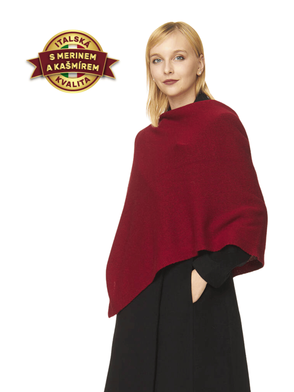 Pončo s merinem a kašmírem - sangria