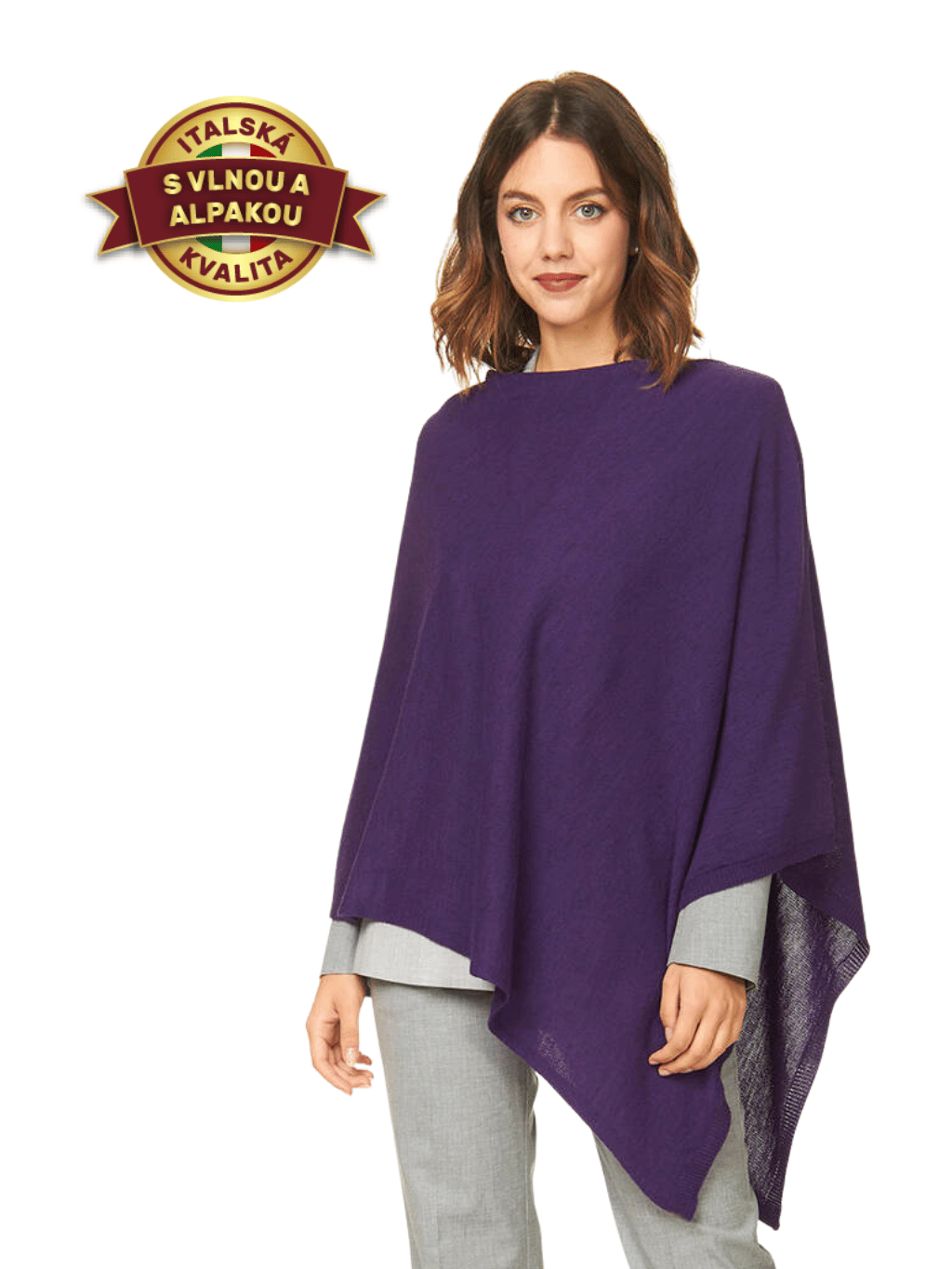 Pončo s vlnou a alpakou - ametyst