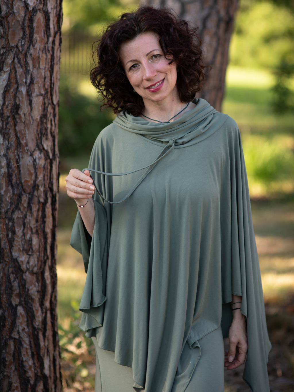Ve verzi šaty nebo sukně je skvělým doplňkem jemné pončo Afrodité, lehký svetřík Galateia nebo bambusový šátek. Díky široké nabídce barev (několik desítek) si můžeš hrát s kombinacemi tón v tónu nebo zvolit výrazný kontrast – záleží jen na tvé momentální náladě!