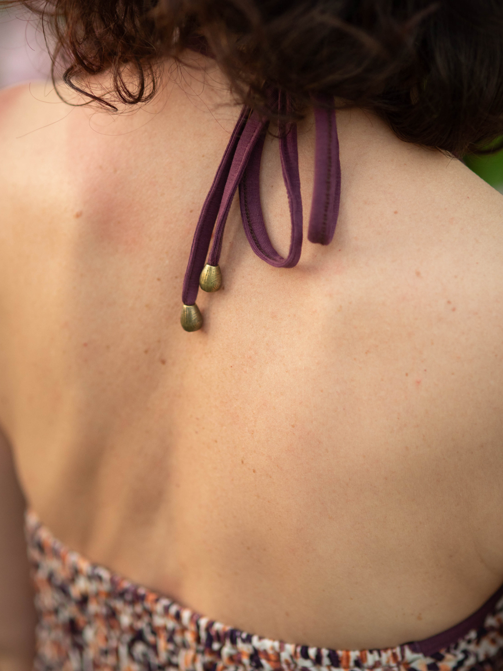 Letní šaty s hlubokým V-výstřihem a zavazováním za krkem jsou navržené tak, aby lichotily přirozeným křivkám tvého těla. Bez podprsenky vypadají nejlépe na menším a středním poprsí - dávají ti svobodu a přirozený, uvolněný vzhled.