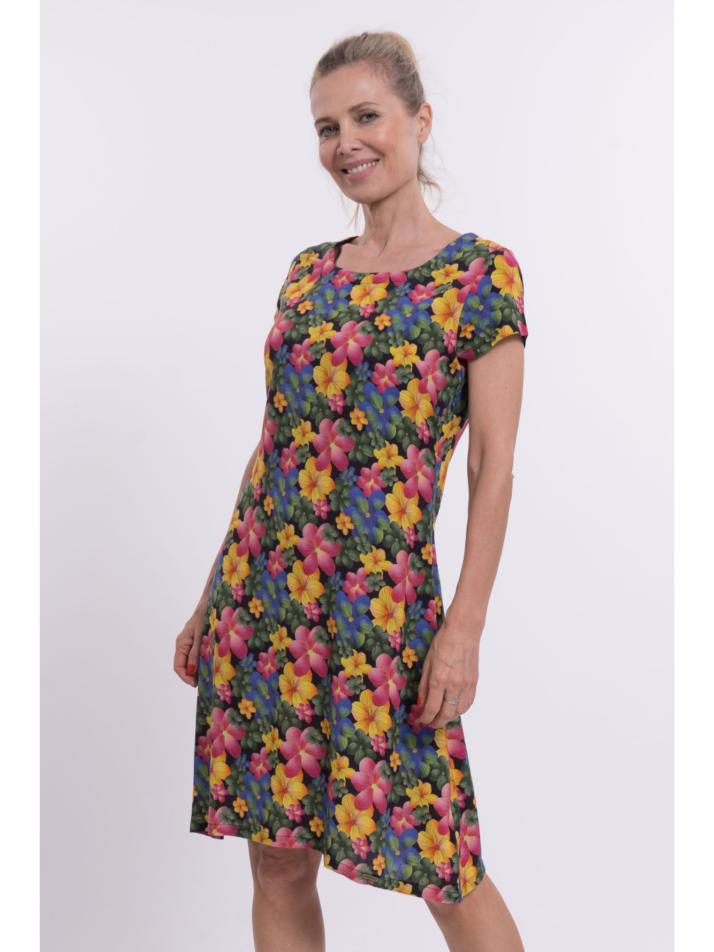 Volný střih, kulatý výstřih a délka ke kolenům - ideální letní šaty pro každou ženu.