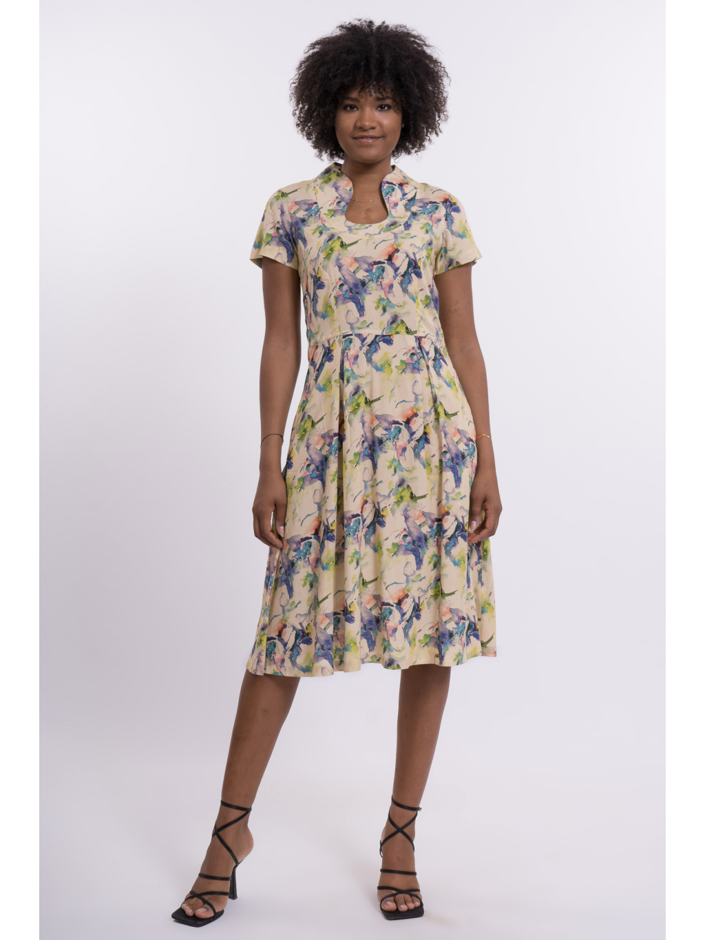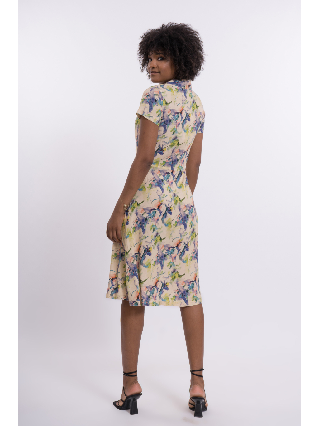 Tyto šaty jsou vyrobeny ze 100% udržitelné viskózy LENZING™ ECOVERO™. Od běžné viskózy se liší nižší spotřebou vody a energie při výrobě. Použité suroviny pocházejí z udržitelného lesního hospodářství.