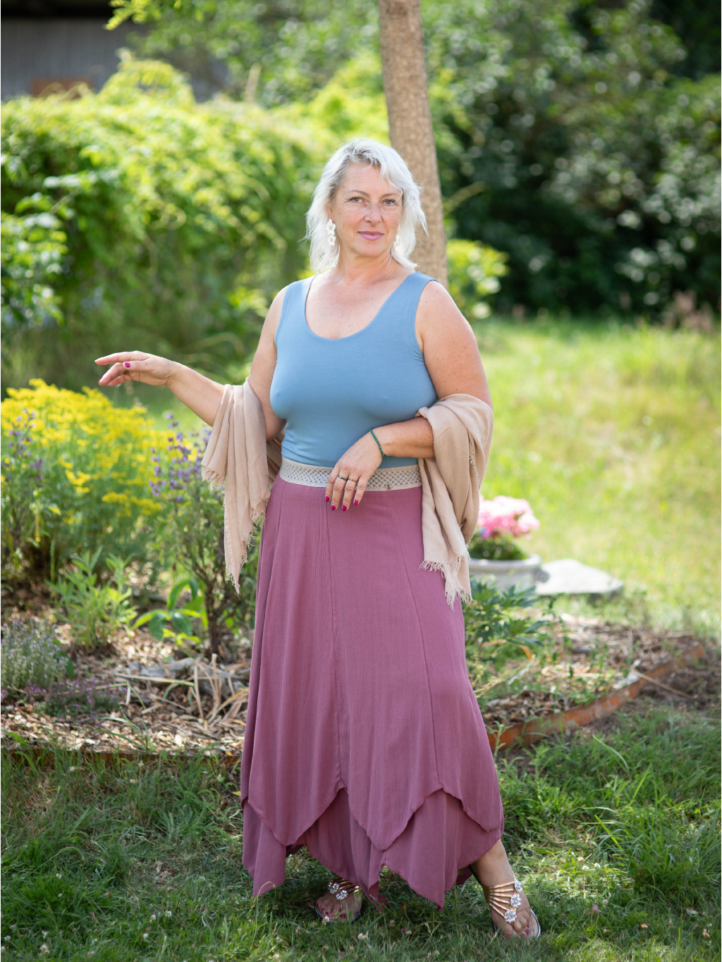 Dvojitá sukně CHIARA (viskóza/len) tmavý sléz