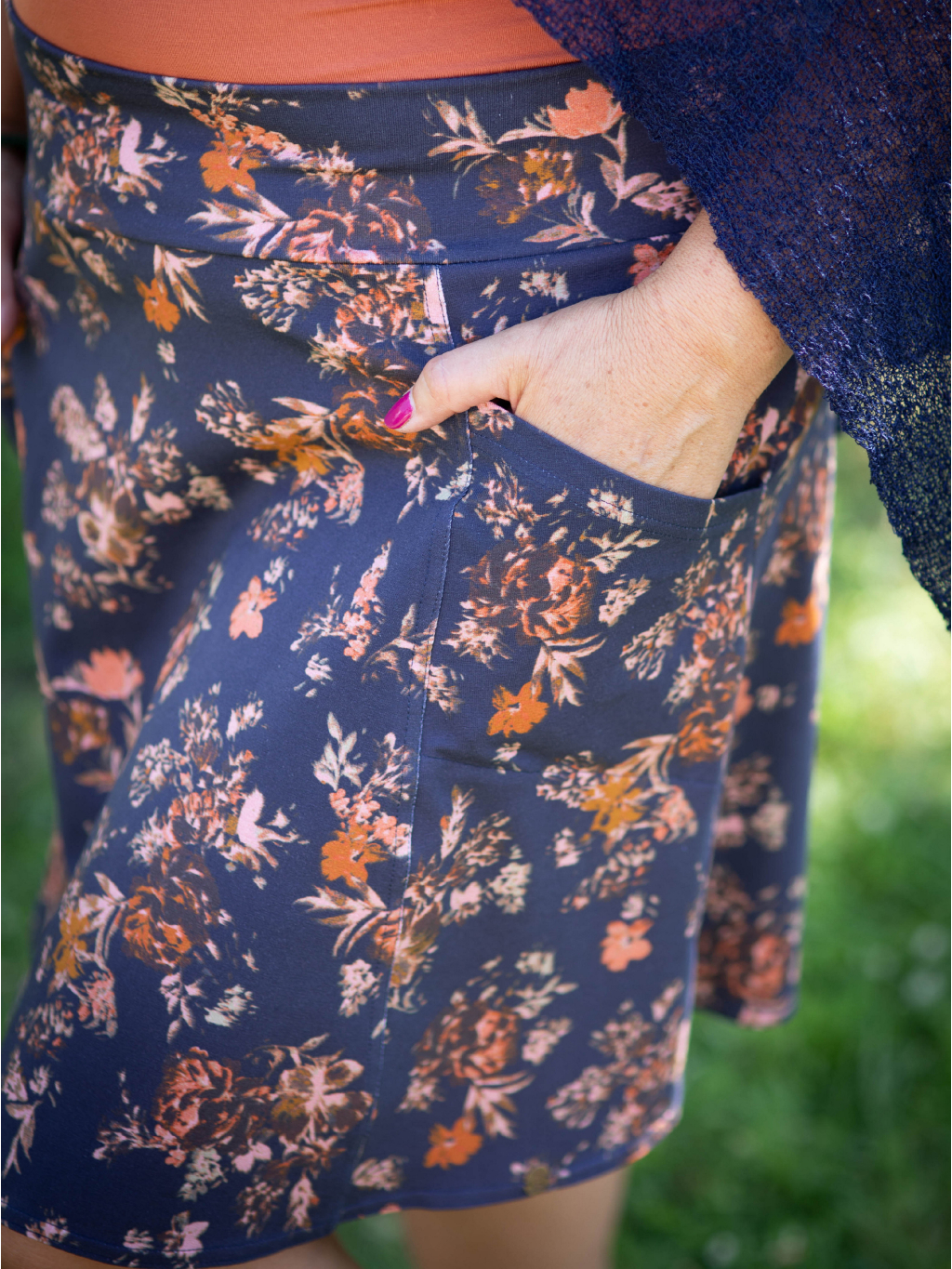 Krátká bavlněná sukně GRÉTA modrá se skořicí