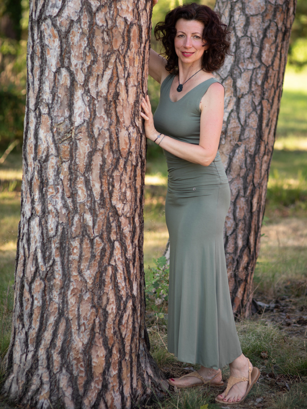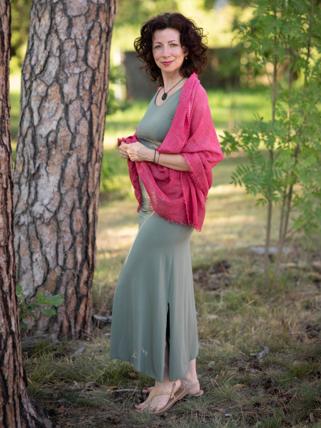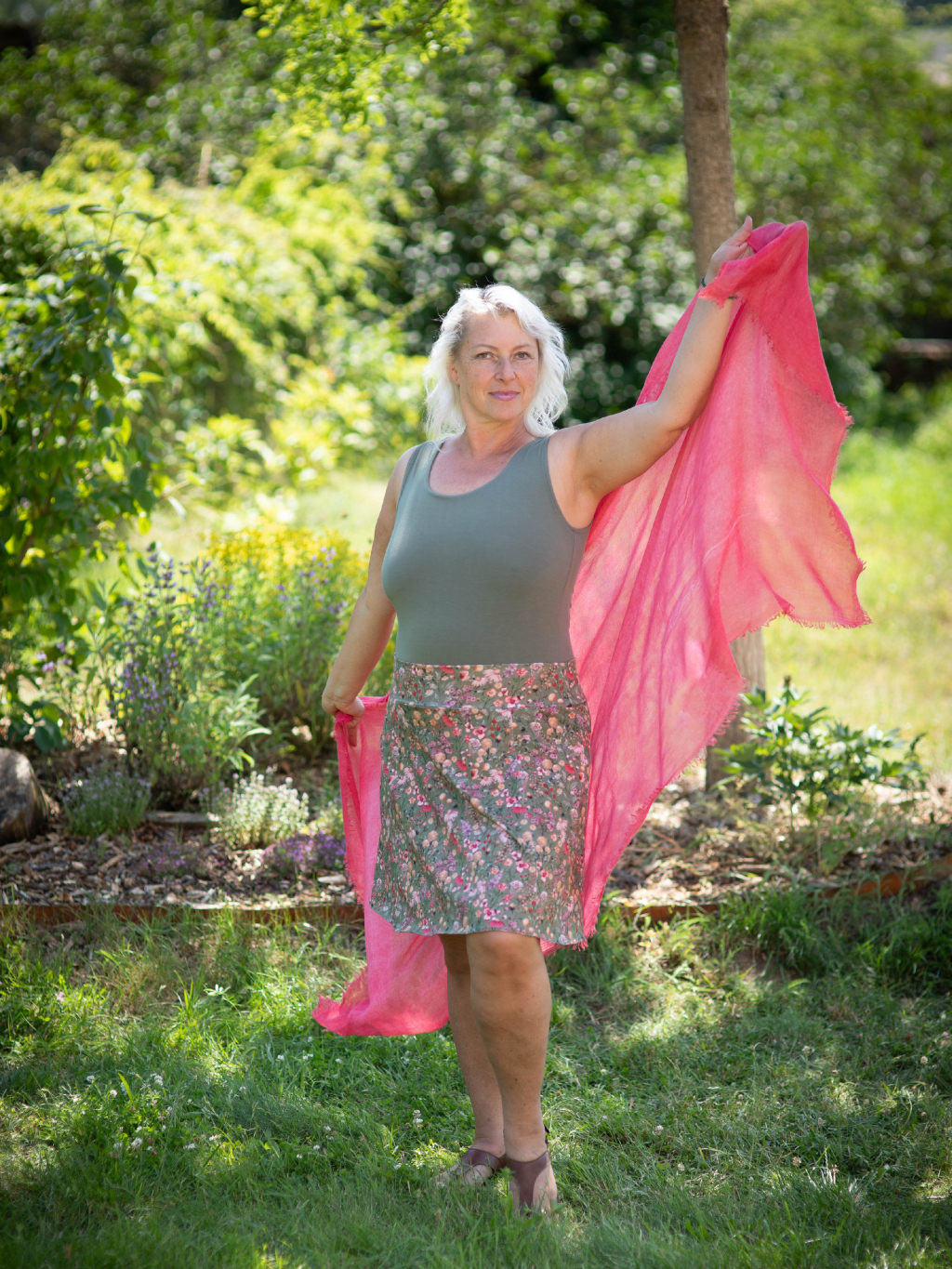 Bambusové tílko Klára můžeš sladit se sukní Gréta, sukní Natalia nebo s šaty Sára oblečenými jako dlouhou sukni - obojí ve stejné barvě a vytvořit tak dojem šatů. Skvěle také vypadá v kombinaci s květinovými variantami této sukně ať už v délce nad nebo pod kolena. Pokud miluješ dlouhé sukně a romantický look, doporučujeme vyzkoušet variantu se sukní Chiara z bavlny nebo v kombinaci bavlna + len.