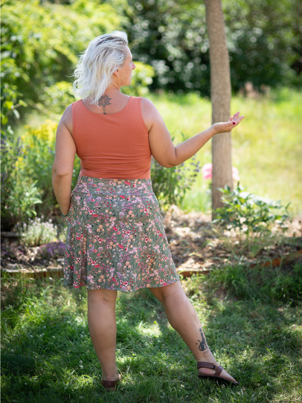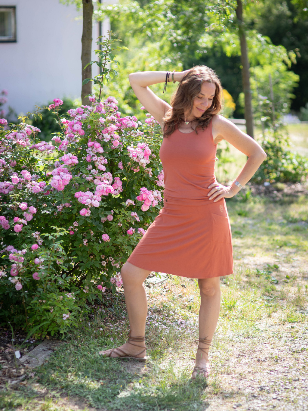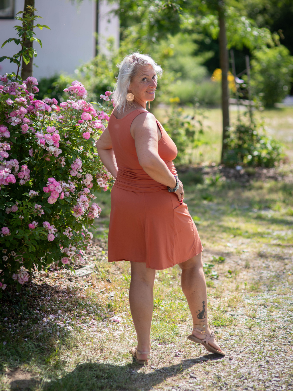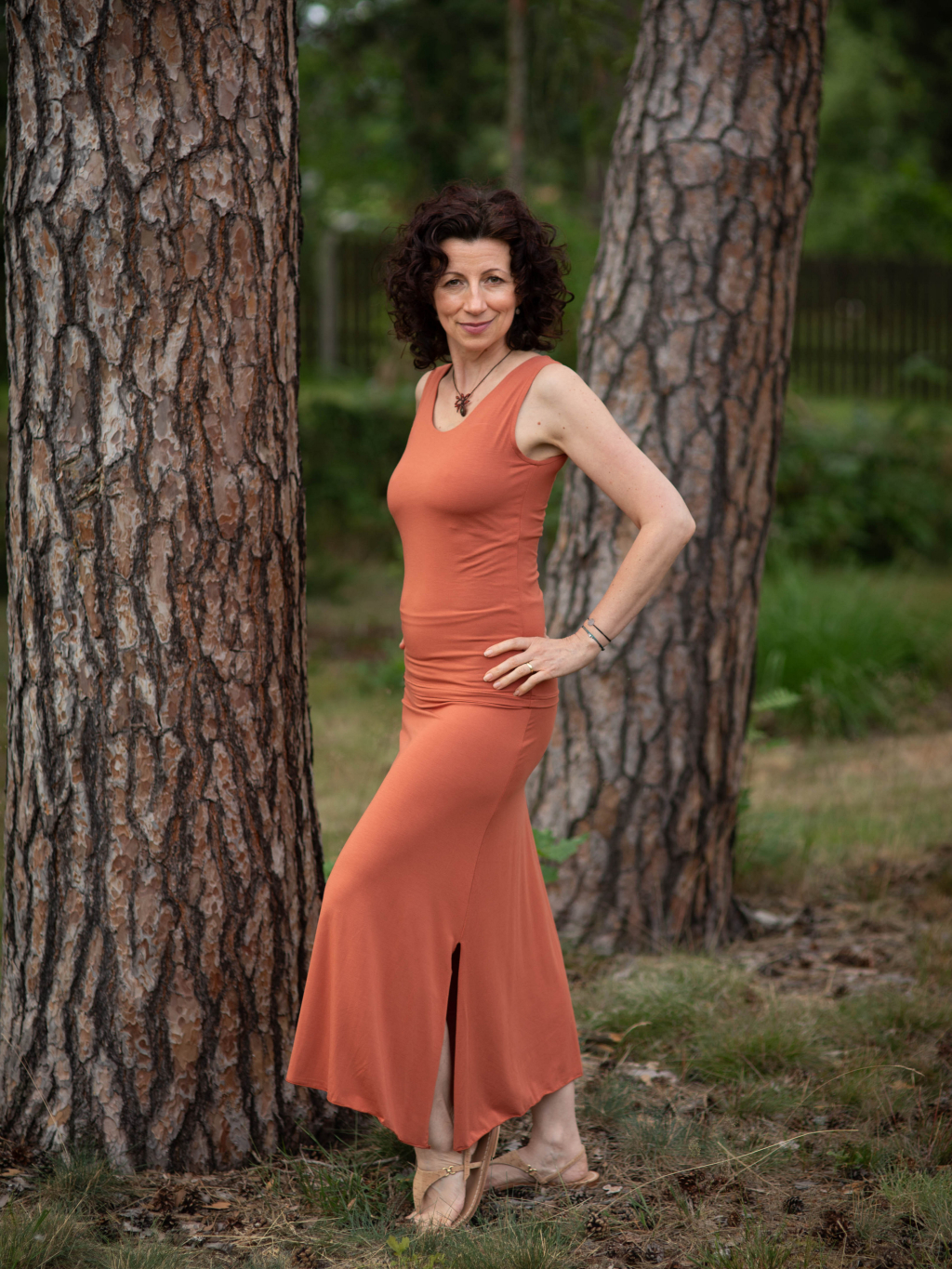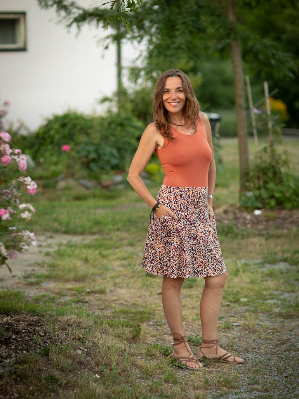 Bambusové tílko Klára můžeš sladit se sukní Gréta, sukní Natalia nebo s šaty Sára oblečenými jako dlouhou sukni - obojí ve stejné barvě a vytvořit tak dojem šatů. Skvěle také vypadá v kombinaci s květinovými variantami této sukně ať už v délce nad nebo pod kolena. Pokud miluješ dlouhé sukně a romantický look, doporučujeme vyzkoušet variantu se sukní Chiara z bavlny nebo v kombinaci bavlna + len.