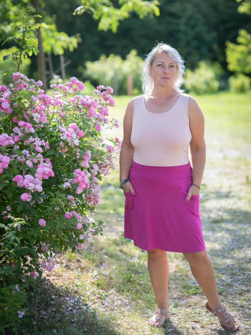 Bambusové tílko Klára můžeš sladit se sukní Gréta ve stejné barvě a vytvořit tak dojem šatů. Skvěle také vypadá v kombinaci s květinovými variantami této sukně ať už v délce nad nebo pod kolena. Pokud miluješ dlouhé sukně a romantický look, doporučujeme vyzkoušet variantu se sukní Chiara z bavlny nebo v kombinaci bavlna + len.